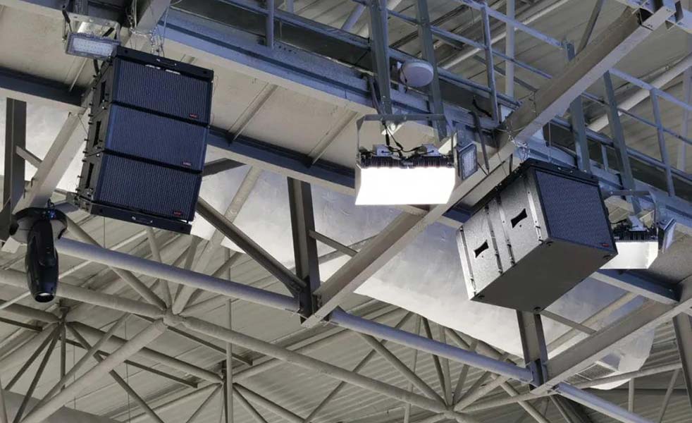 系統(tǒng)選用了SR1562高性能全頻音箱均勻布置在訓練場內(nèi),讓場內(nèi)的每個角落都能有足夠的聲壓級和均勻度,即使在冰面上不斷移動時,也能被清晰地聽到。