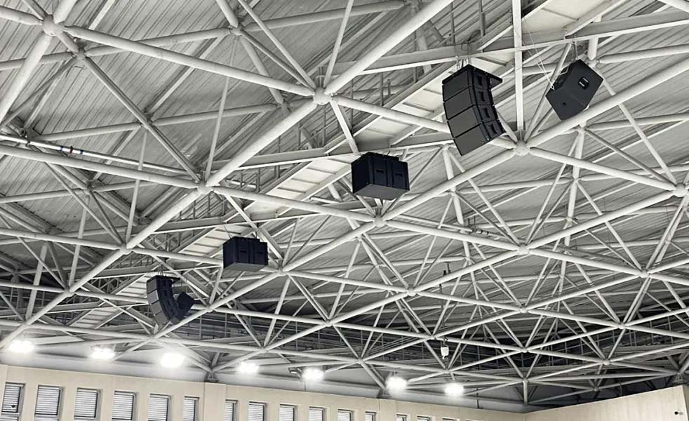 場館采用GV110-P線陣揚聲器以及GV18B-P超低揚聲器,另配四只SR1562全頻音箱,全部根據(jù)該場地的建聲特點進行定制設計,保證精準的覆蓋角度,同時利用揚聲器的分布將消極反射聲的影響將至最小。