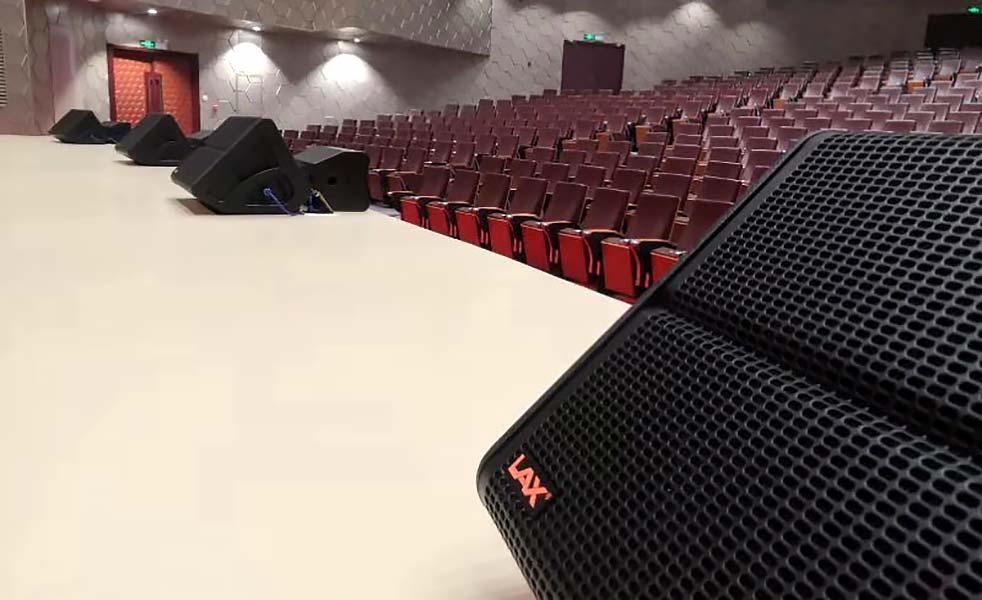景德鎮(zhèn)市群眾文化活動中心劇場內(nèi)全線使用LAX產(chǎn)品,主擴使用LAX AT110全頻線陣列揚聲器搭配ATL18B超低頻揚聲器使用,分別位于舞臺左右兩側(cè)吊掛,還有使用到TC815全頻揚聲器、S218B超低頻揚聲器,舞臺返送方面使用到AT12M作為返送音箱,U8 為臺唇音箱。