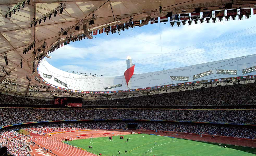 國家體育場(鳥巢)位于北京奧林匹克公園中心區南部,為2008年北京奧運會的主體育場,占地20.4公頃,建筑面積25.8萬平方米,可容納觀眾9.1萬人。舉行了奧運會、殘奧會開閉幕式、田徑比賽及足球比賽決賽。奧運會后成為北京市民參與體育活動及享受體育娛樂的大型專業場所,并成為地標性的體育建筑和奧運遺產。