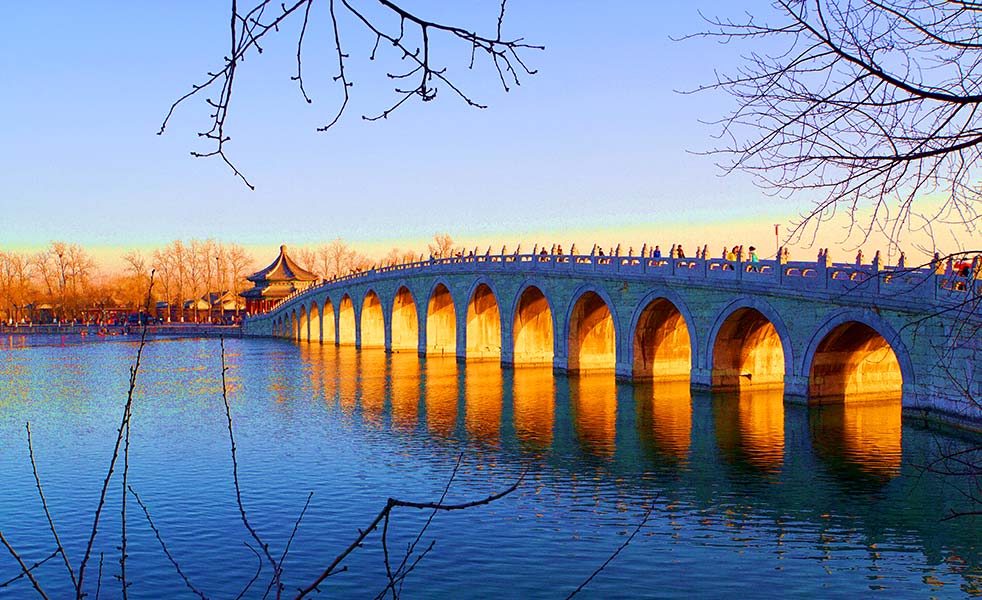 頤和園,中國清朝時期皇家園林,前身為清漪園,坐落在北京西郊,距城區15公里,全園占地3.009平方公里(其中頤和園世界文化遺產區面積是2.97平方公里),水面約占四分之三。與圓明園毗鄰。它是以昆明湖、萬壽山為基址,以杭州西湖為藍本,汲取江南園林的設計手法而建成的一座大型山水園林,也是保存最完整的一座皇家行宮御苑,被譽為“皇家園林博物館“。
