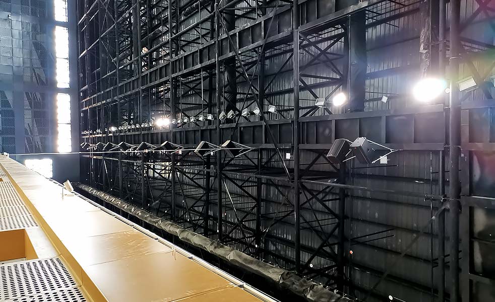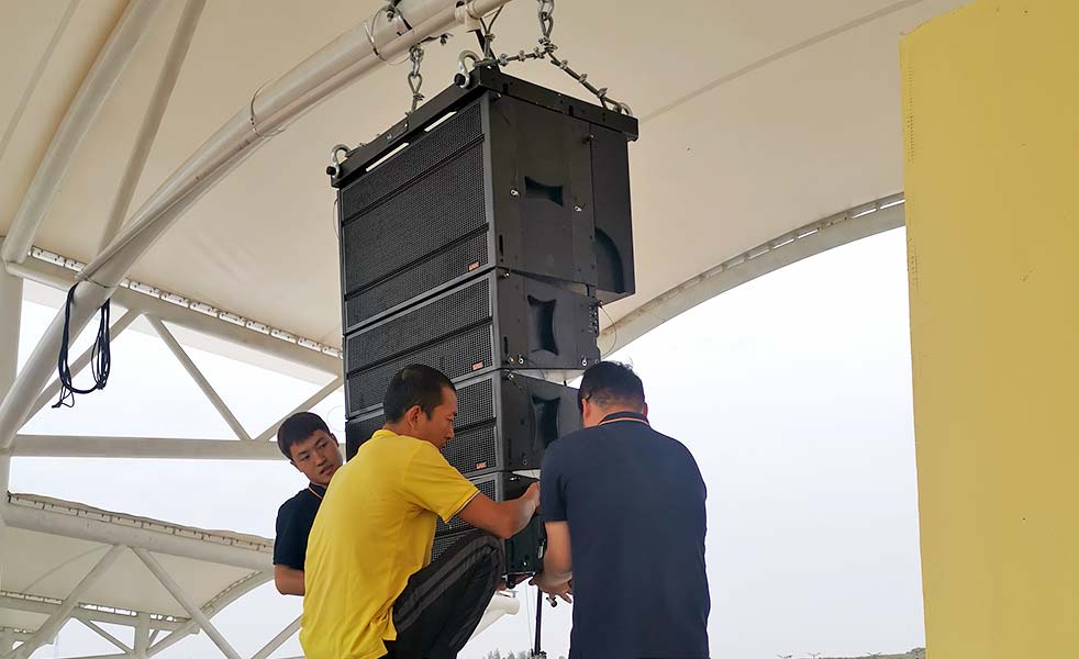 室外運(yùn)動場主擴(kuò)選擇4組LAX AT210+ATH18B線陣組,吊掛安裝在主席臺上方,選用單15寸二分頻單驅(qū)動全頻揚(yáng)聲器TH615作為主席臺及近場補(bǔ)聲。音箱經(jīng)過精確擴(kuò)聲角度調(diào)整,能夠確保操場主席臺、觀眾區(qū)及運(yùn)動場區(qū)域覆蓋均勻、聲音準(zhǔn)確、音質(zhì)清晰。