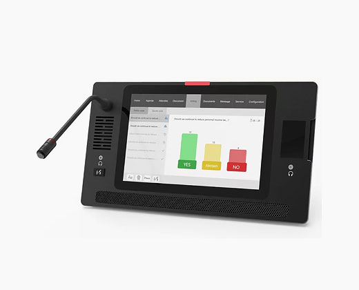 系統基于臺面式平臺開發,采用行業臺面式架構,頂級硬件配置包含雙核處理器、多點觸摸真彩數字液晶屏。桌面移動式觸控會議終端系統實現全數字化管理,支持Ethemet網絡連接方式,有力保障通信質量。系統中央節點采用千兆以太網串行模式連接,級聯擴展全部通過網線實現,終端采用有線通訊組網方式,對各種規格的會議廳以及臨時會場均具有良好的適應性。