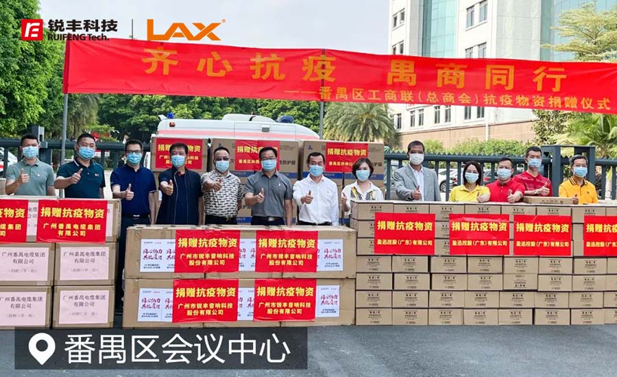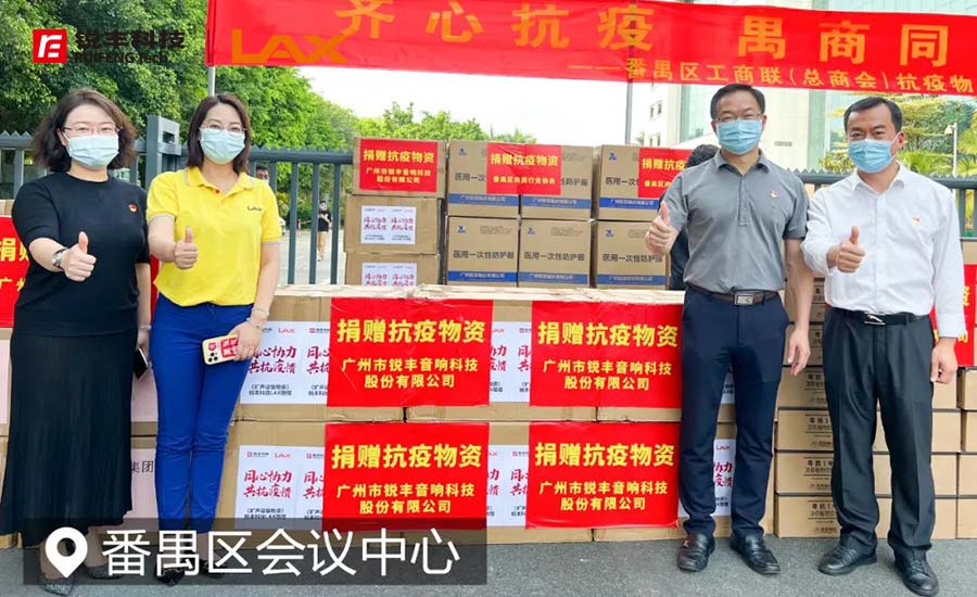 活動中,由廣州市銳豐音響科技股份有限公司董事副總經理、LAX品牌負責人陸秀冰代表企業出席本次捐贈活動,共捐贈擴聲器300套。“抗擊疫情,人人有責”,作為番禺本土企業必須增強大局意識,踐行社會責任,展現企業擔當,為我區打贏疫情防控這場硬仗貢獻禺商力量!