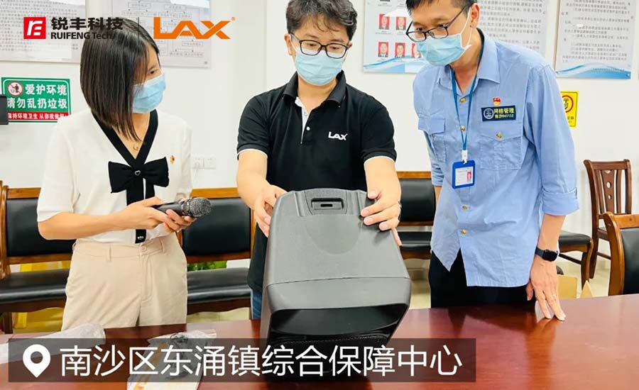 同日下午,銳豐科技為南沙區東涌鎮綜合保障中心捐贈擴聲設備24套,LAX技術總監陳楚漢進行現場教學。